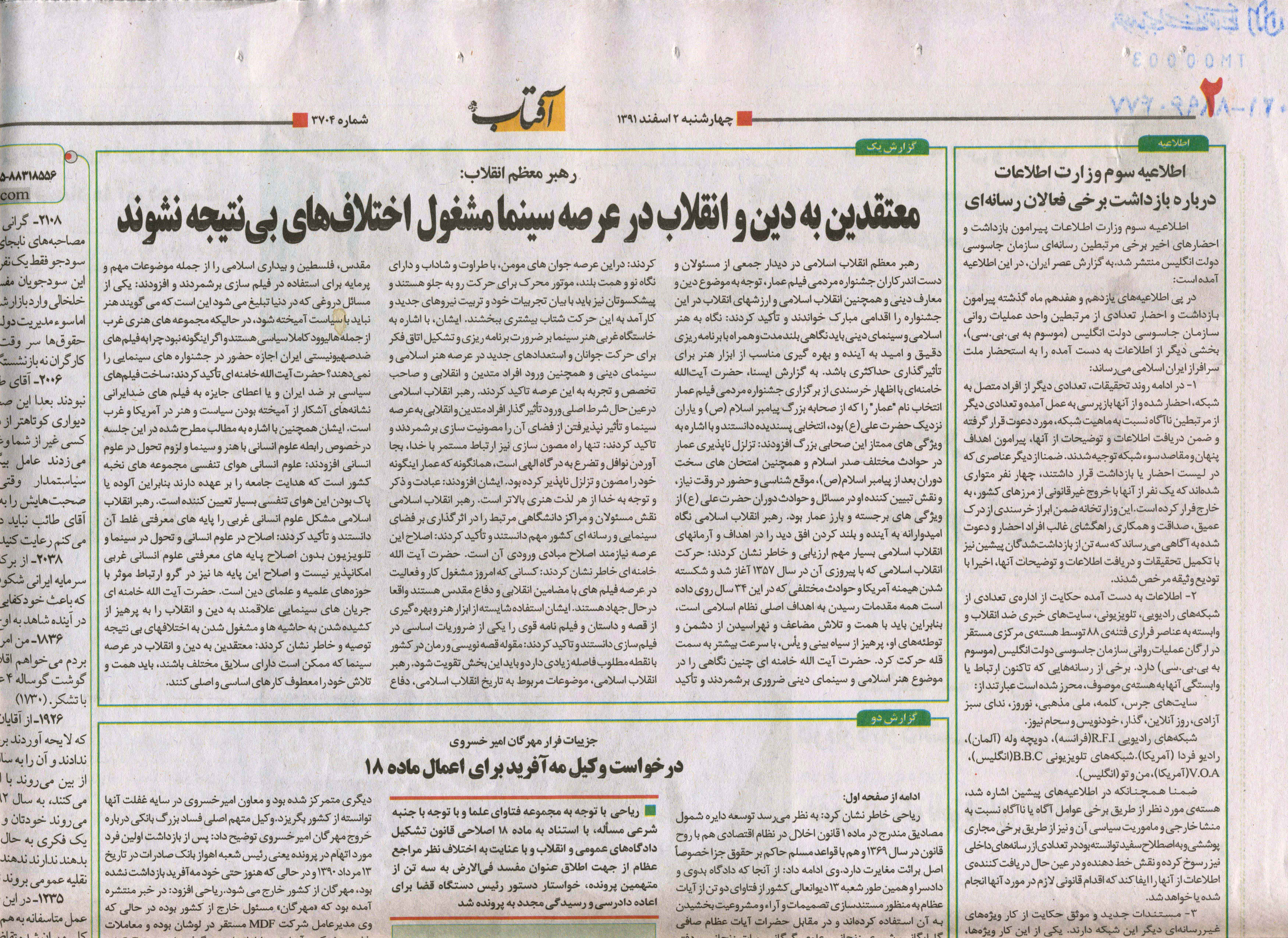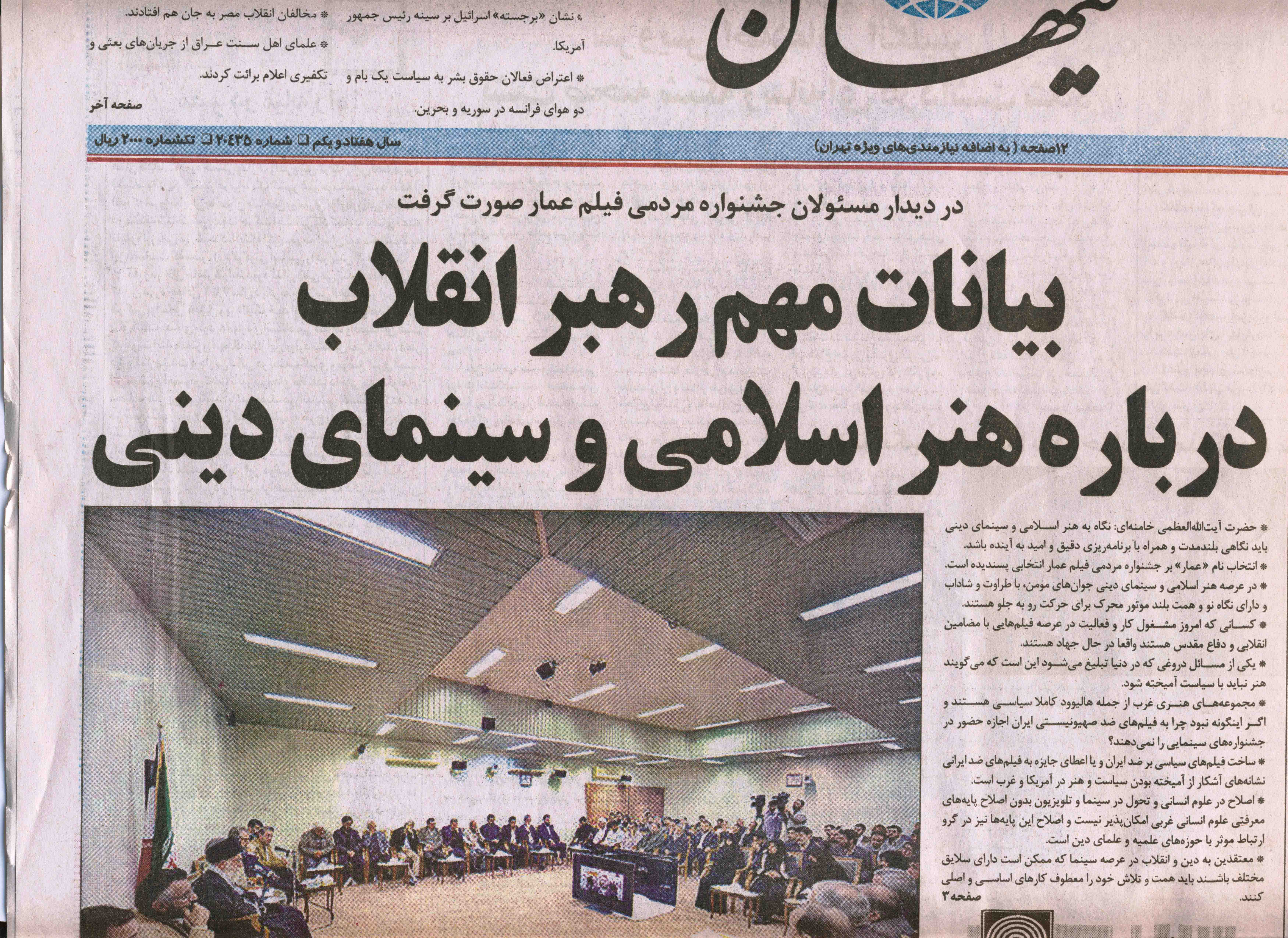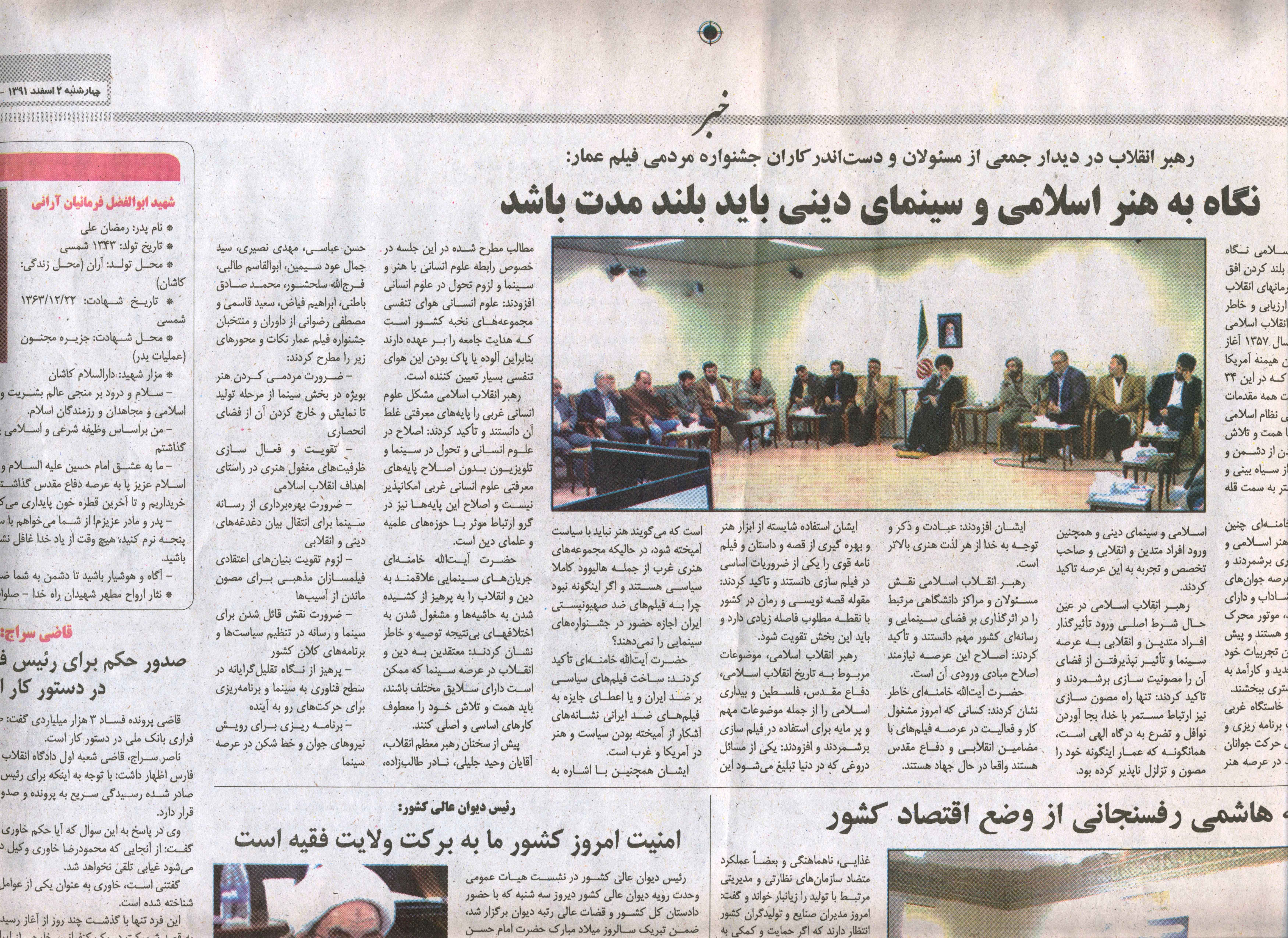 لیست روزنامه هایی که دیدار سال گذشته دست اندرکاران جشنواره عمار با رهبر معظم انقلاب را پوشش دادند.