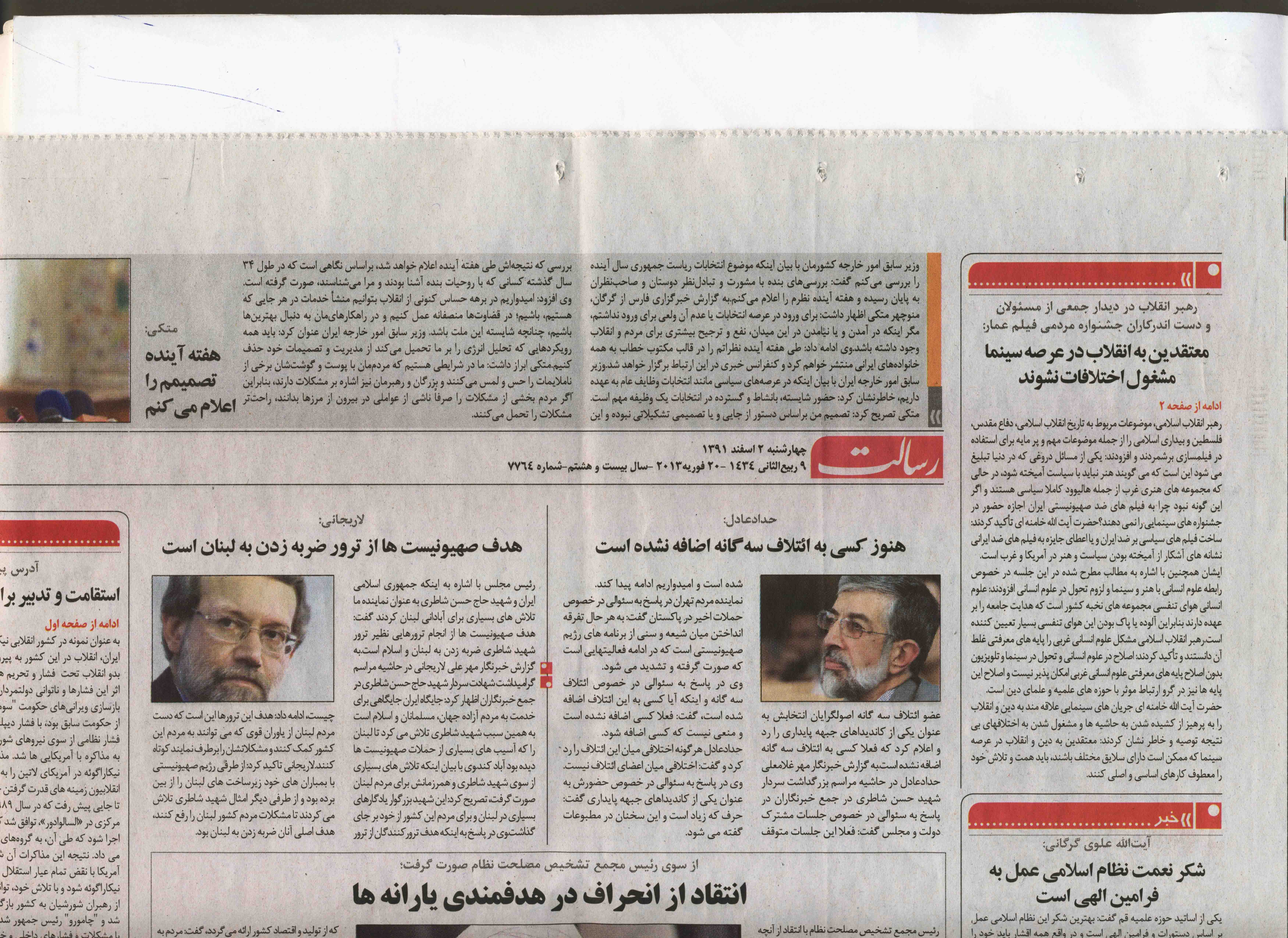 تمامی روزنامه هایی را که سال گذشته خبر دیدار اعضای جشنواره عمار با رهبر معظم انقلاب حضرت آیت الله خامنه ای را پوشش دادند در ادامه بصورت فایل pdf و عکس آمده است.